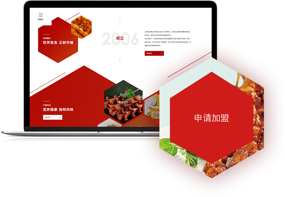 正新食品自2000年發(fā)展至今,已在全國開設近萬家連鎖門店,旗下更擁有"正新雞排"和"正新烤鴨脖"等多個美食品牌。針對舊版官網的不足,邁若網絡為正新提供全方位網站建設方案,打造全新的加盟型網站。