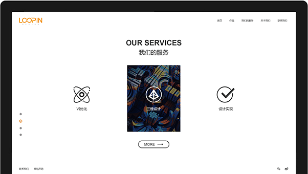 根據(jù)LOOPIN WAY的設(shè)計理念,將獨特的ICON形式結(jié)合簡單時尚的大屏設(shè)計,整屏滾動式加載效果,讓網(wǎng)站在第一視覺上呈現(xiàn)給用戶高端、