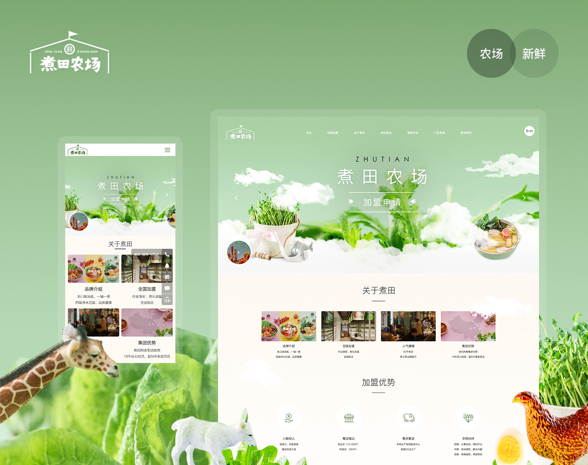 以“農(nóng)場(chǎng)”“新鮮”為創(chuàng)意設(shè)計(jì)靈感,將農(nóng)產(chǎn)品融入網(wǎng)頁(yè)背景中;以沉浸式的瀏覽體驗(yàn),將煮田農(nóng)場(chǎng)的產(chǎn)品特色、服務(wù)理念及加盟條件娓娓道來(lái),為瀏覽者帶來(lái)舒適、溫馨感,同時(shí)也完美闡釋煮田農(nóng)場(chǎng)的網(wǎng)絡(luò)形象。
