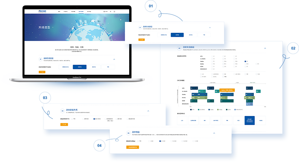 定制開發(fā)天線選型功能,幫助瀏覽者通過簡單四個步驟快速縮小天線選擇范圍,從而快速找到符合需求的產(chǎn)品。