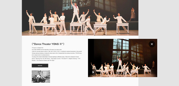 網(wǎng)站實現(xiàn)視頻在線播放功能,訪問者可在線觀看舞蹈視頻,下拉進入詳情頁時,視頻會以小窗口播放形式,懸浮在頁面上方,使得用戶瀏覽詳情介紹信息時,也可同時觀看視頻,適配了用戶的觀感體驗。