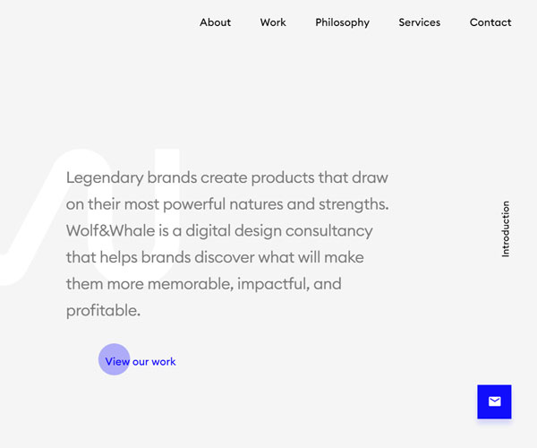 Wolfwhale是一家設(shè)計(jì)咨詢公司,網(wǎng)站通過藍(lán)色的主色調(diào)和多樣化的字體以及精細(xì)