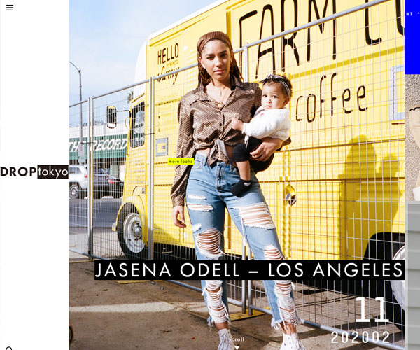 Droptokyo展示了不同設(shè)計(jì)的服裝,網(wǎng)站的排版方式十分獨(dú)特,左導(dǎo)航的展開方式,