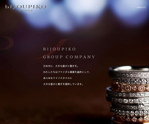 Bijoupiko制作最為精美的戒指,網(wǎng)站的建設(shè)也是極其的精美高端,精美的圖片與深沉的顏色