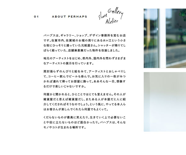 Perhaps是一家畫廊的展廳,網(wǎng)站的整體設(shè)計風(fēng)格較為簡潔,簡單、清新的圖文排版形式