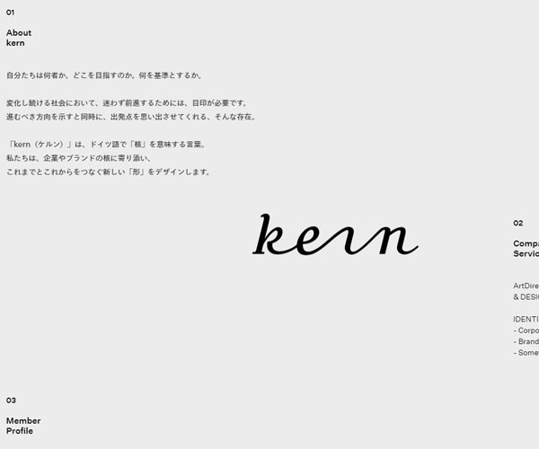 Kern是一個提供核心設(shè)計平臺的網(wǎng)站,低沉的灰色色調(diào),獨(dú)特的文字排版構(gòu)思,