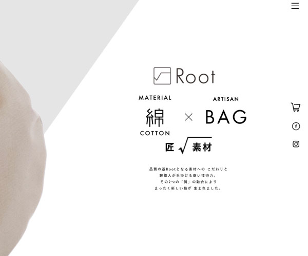 Root1887制作各式各樣的包包,網(wǎng)站的建設結合經(jīng)典的電商網(wǎng)站,外加特別的棱形切角