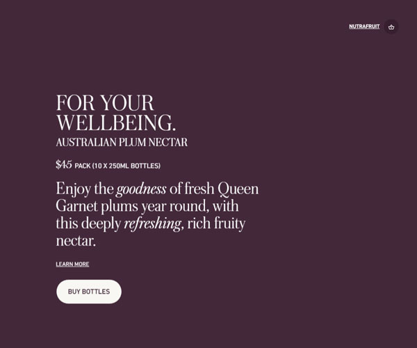 Queengarnet制作不同種類的藍莓果汁飲料,公司網(wǎng)站以藍莓色霸占,藍莓色的低沉格調(diào)