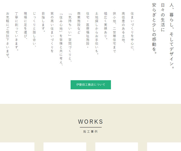 Isedakoumuten為客戶從內到外的設計整棟建筑,網站的整體建設風格較為簡潔明了,
