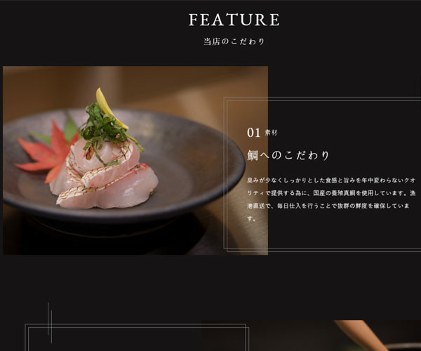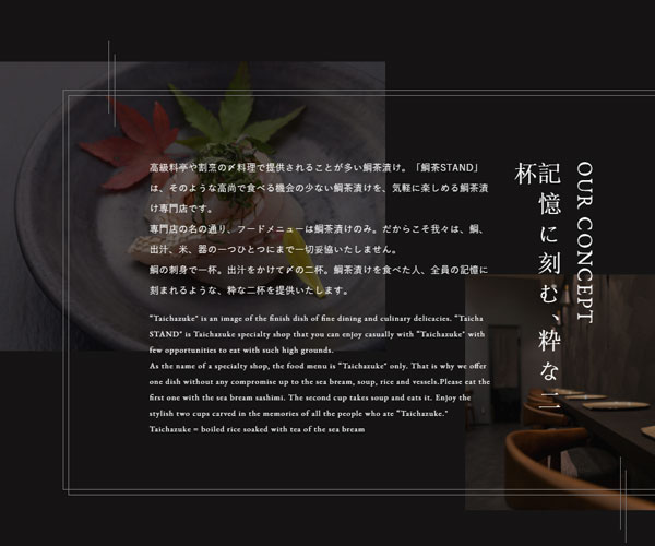 Taicha為客戶制作美味的刺身米飯,網(wǎng)站的整體建設(shè)風(fēng)格通過簡約低沉的黑色為主,
