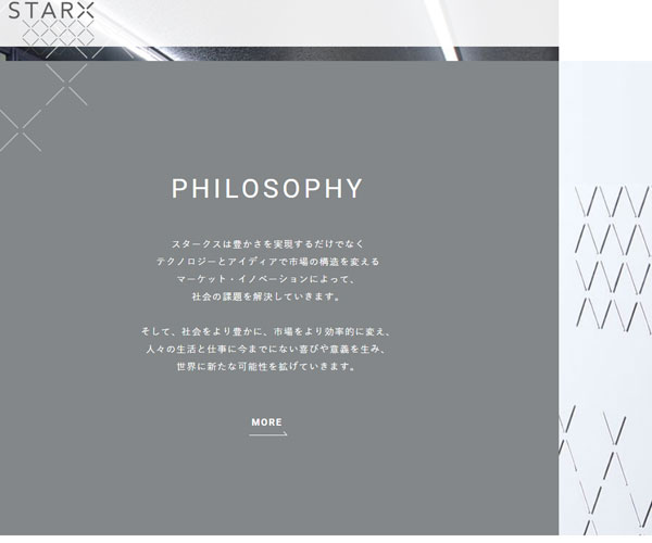 Starx把自己定義為市場創(chuàng)新的公司,網(wǎng)站整體的建設(shè)風(fēng)格通過公司獨特設(shè)計的logo來